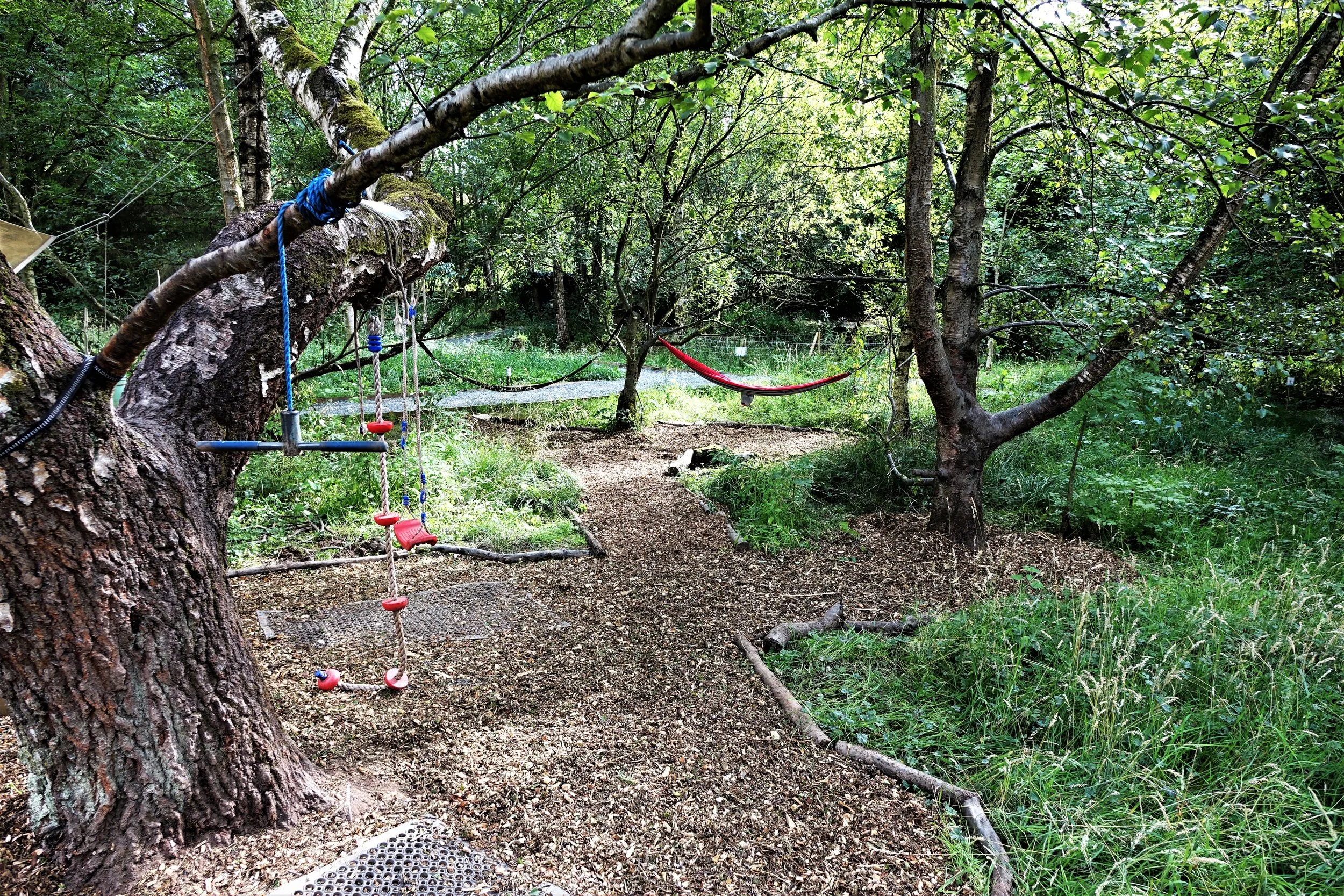 Fire circle; Pond dipping platforms; Wiza Beck; Heated Cabin / classroom; Mini-adventure playground; Mud Kitchen; Bug hotel; Compost toilet/urinal; accessible compost toilet; Three bridges; Fairy Lane; Mud Mountain; Hammocks; Temporary shelters.